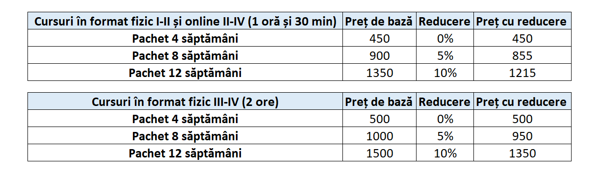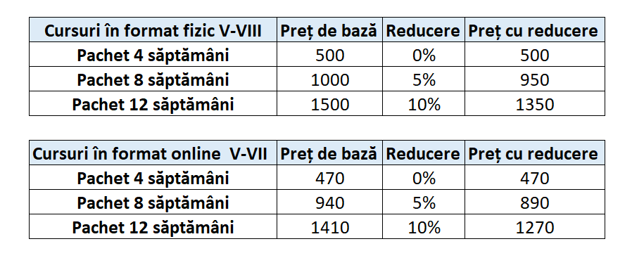 Cursurile pentru copii de 9-10 ani se vor desfășura săptămânal, începând cu data de 18 septembrie, în grupe restrânse de 6-7 participanți.