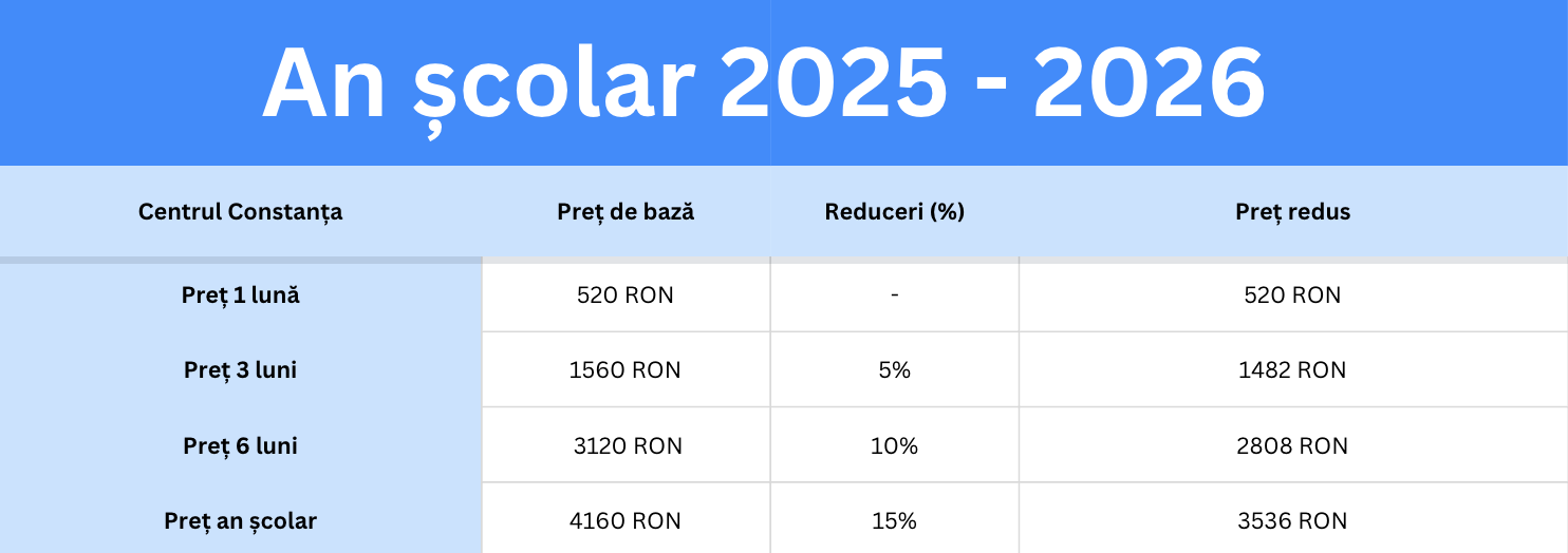 Vino la cursurile noastre împreună cu fratele/sora ta și al doilea copil va primi o reducere de 10% din valoarea pachetului achiziționat.