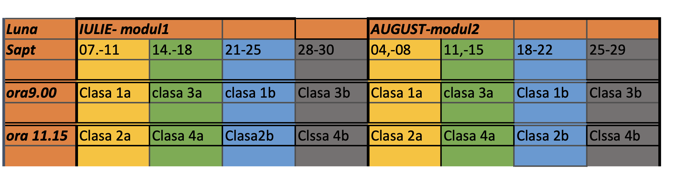 Cursurile la clasă se vor desfășura la sediul nostru, în grupe de maxim 6 copii.