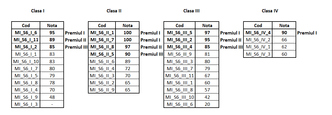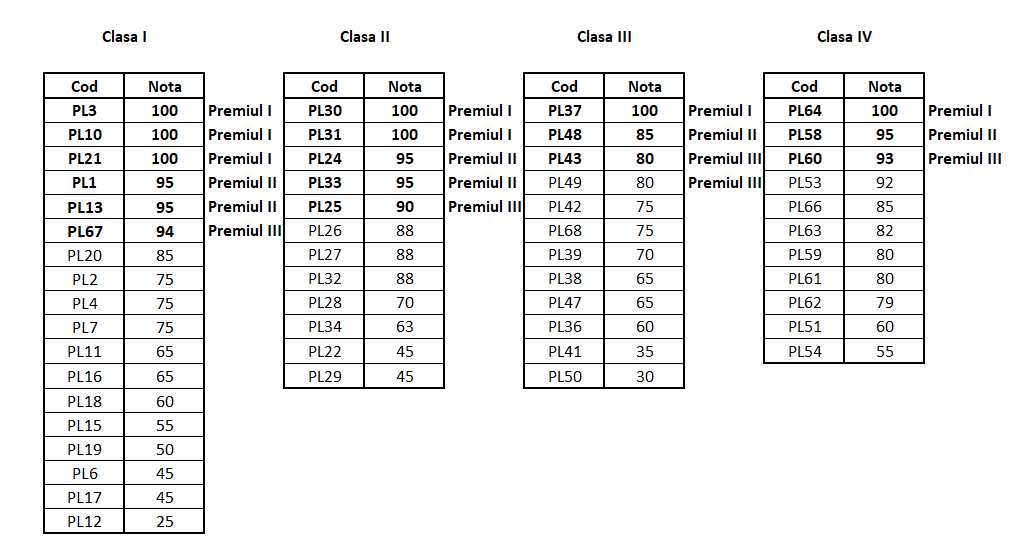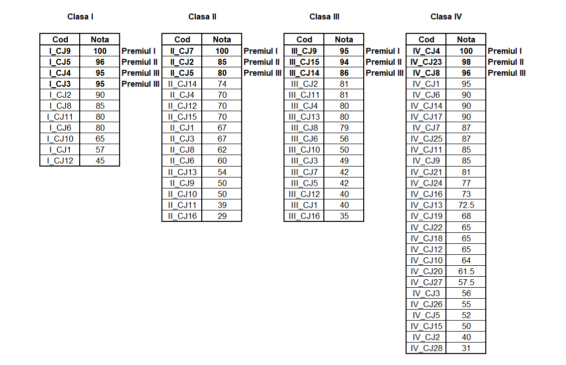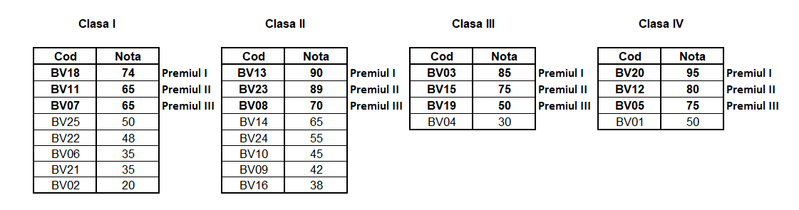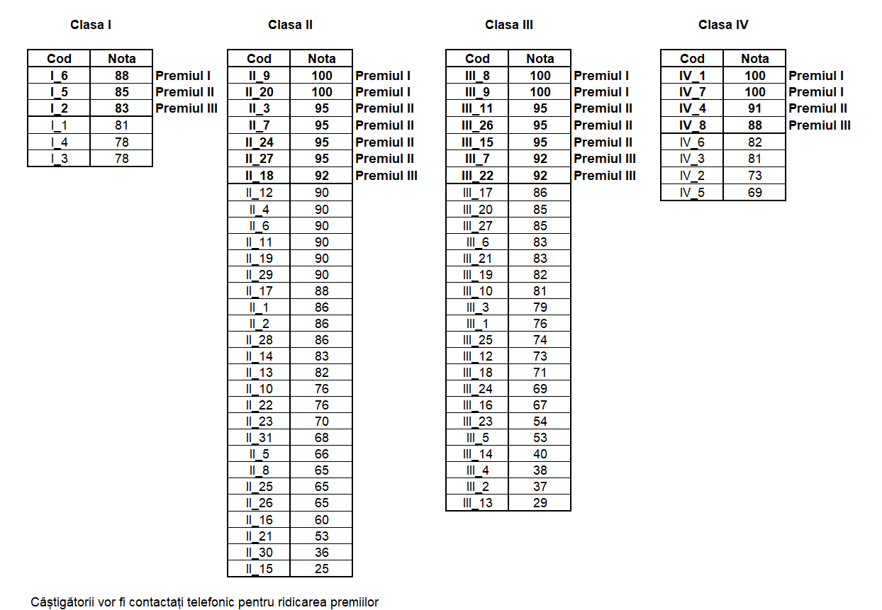 Rezultatele vor fi afișate pe site în maxim o săptămână de la data desfășurării concursului.