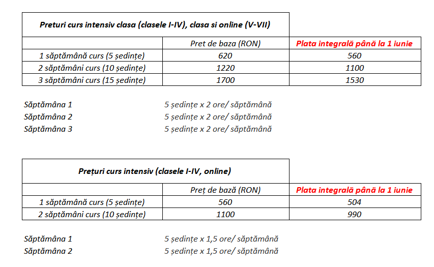 Cursurile la clasă se vor desfășura la sediul nostru, în grupe de maxim 7 copii.